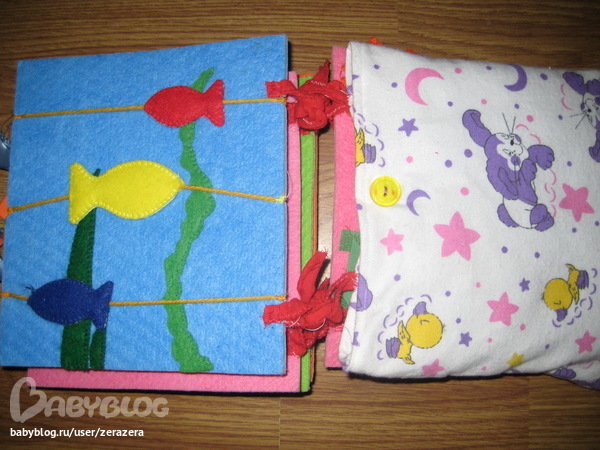 это первая полноценная книжка, которую сделала полгода тому назад. Сейчас она уже "засмотрена" до потерянных деталей, оторванных бусин и крючков( но это мне наука, чтобы в дальнейшем пришивала железными нитками)