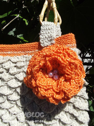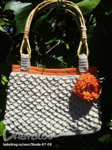 хорошо получилось! я себе сегодня тоже сумку доделала, таким же узором. но чешуйки почемуто завернулись. нитки у меня 100% полиэстр.