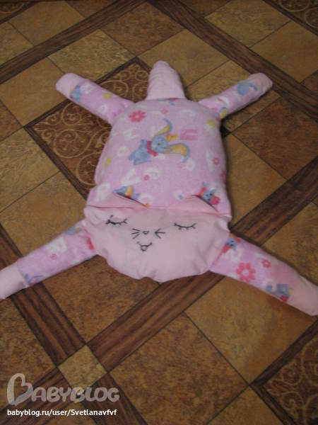 Игрушечный мир - животныеТеперь у нас дома поселилась вот такая спящая кошечка, которую сшила моя дочка (8 лет). Посмотрела она, как мама шьёт, насмотрелась на работы других мастериц, и решила сама сшить игрушку-грелку. И сметывала сама, и на машинке строчила, и мордашку сама нарисовала и вышивала. Внутри грелки горох, с ней и играть приятно и зимой будет нас согревать.Дочка довольна, а я в диком умилении от моей рукодельницы!