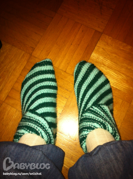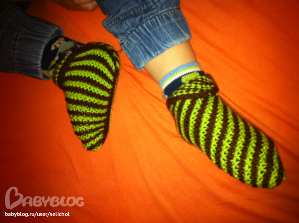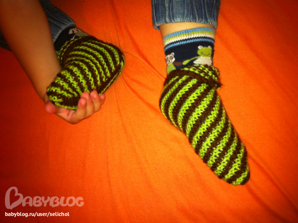 Я такие же тапки связала и задумалась об антискользящей подошве. Вы как её сделали??? А какое украшение на мальчуковые планируете?