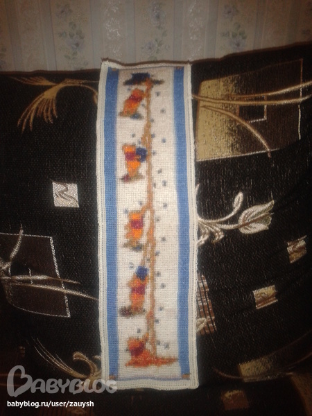 3.)вини пух,вышился от балды,чесно не очень нравится результат!вышила его дней за 15. после половины вышитого поняла,что изображение не четкое,но все же решила довышивать,теперь весит над пеленальным столиком как фон для ватных дисков в упаковке.