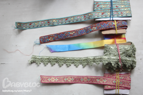 ленты по 10рублей, радужная - косая бейка 8 руб, кружевная зеленоватая - плотное шитье - 15р метр