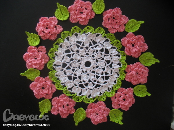 с розочкой красивее,но не функционально. можно было центр салфетки (цветочек по рисунку) розовым связать.