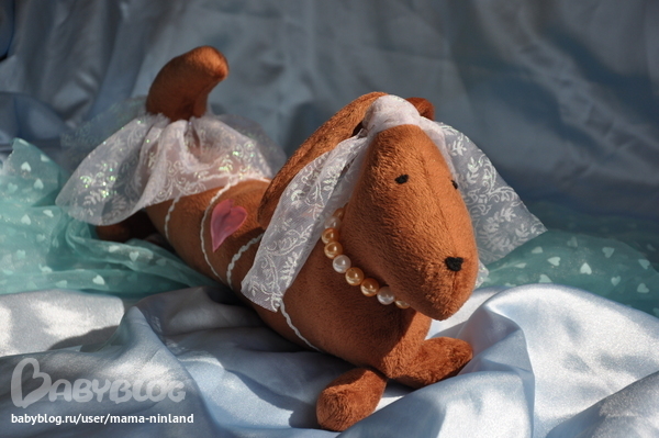 Игрушечный мир - животныесшился вот такой эксклюзив для моей подруги, которая просто обожает такс (ну где она ещё найдет такую таксу?-))! образ невесты получился непроизвольно! будем считать это знаком-символом-предчувствием)) так как подружка незамужняя.. ПОКА ЧТО) люблю когда образ создается непроизвольно. задумываешь одно - а выходит другое, более подходящее!