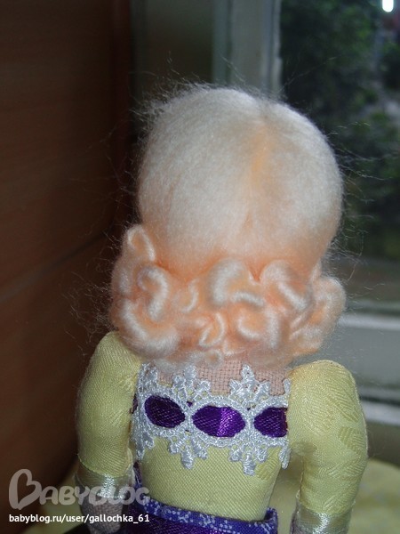 Спасибо,Ирина!!!!!А прическа делается очень просто-Отмерила волосы прядками через всю голову,приваляла по пробору(можно пришить)Затем приваляля где-то под ушком,как будьто низкие хвостики.Разделила каждый хвостик на три прядки.Закрутила туго все по одной,пока сами не стали в завитки скручиваться.Уложила покрасивее ......И все!!!!!!Незнаю,понятно ли?