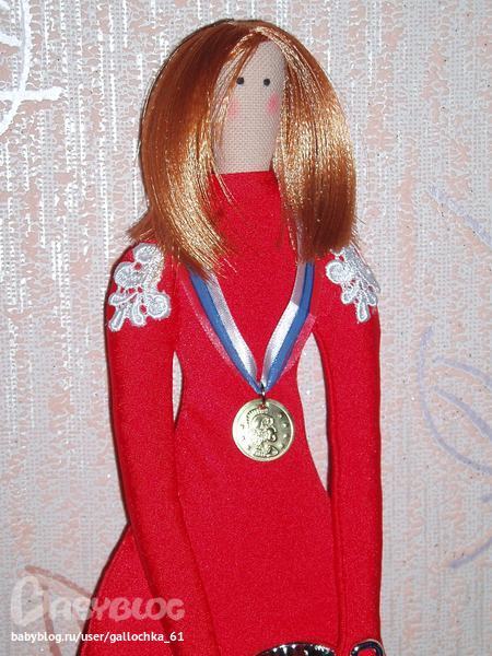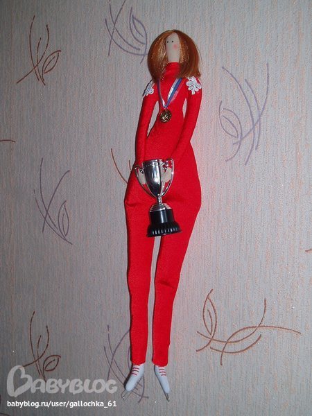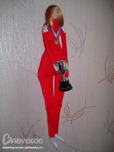 Эта девушка сшилась в подарок для моей племянницы к 25летию.Танюшка(племянница)мастер спорта по конькобежному спорту,входит в состав сборной России.Она Мечтает принять участие в Сочинской Олимпиаде 2014 года.Пожелаем ей спортивных побед!!!!!И исполнения желаний!!!!