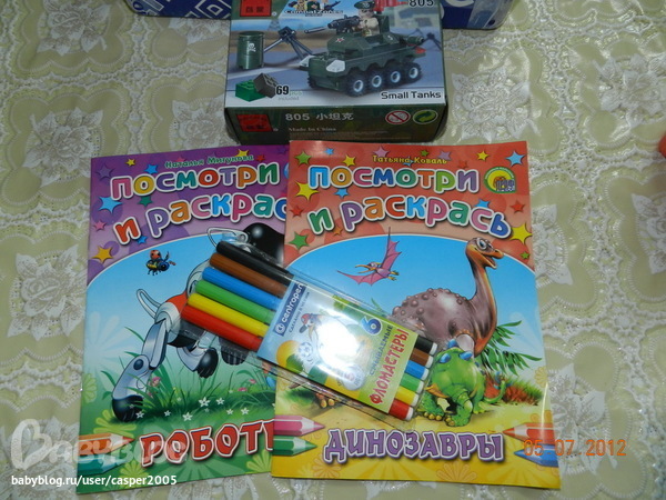 Сынуле раскраски, фломастеры, чупа-чупсы и конструктор