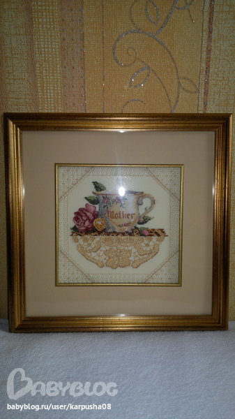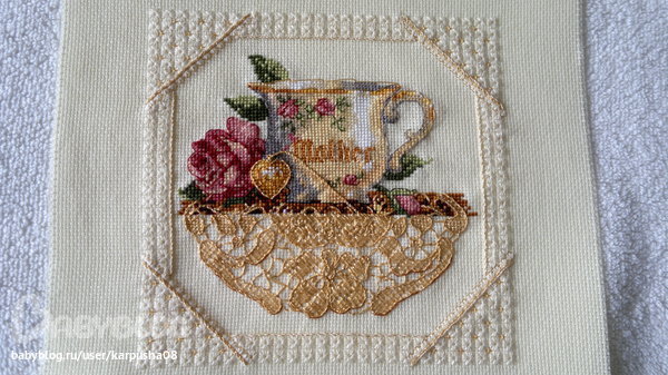 Увидела приглашение в совместник по чашке и чайнику от ДИМ и вспомнила, что свою чашечку вам еще не покзала. Вышивала ее в подарок любимой сестре (а не как у всех принято - маме))))) Она у меня фанат вышивок с чашками и чайниками