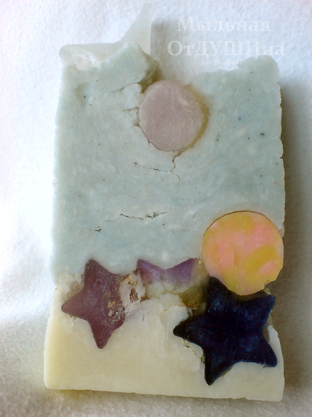 пасибки))))) Знаешь, вроде на основу держатся слои, я еще все части декора подклеила основой, те, что в верхнем застывшем быстро слое, не схватились. Вот одним кусочком моюсь, все держится, и очень удобно!!!!! А в микро звезды из основы могли подплавиться