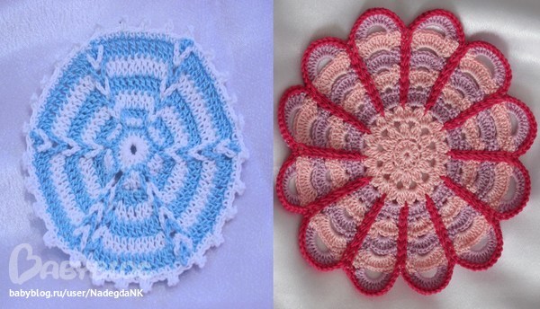 Я их увидела в схемах китайского журнала. Но пока вязала в моей голове все подкрадывались мысли, что в детстве мне подобное показывали и я пробовала обвязывать лепесточки, как здесь!? Наверное, кто-нибудь вспомнит тоже?!