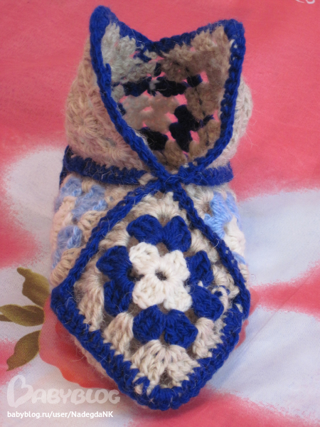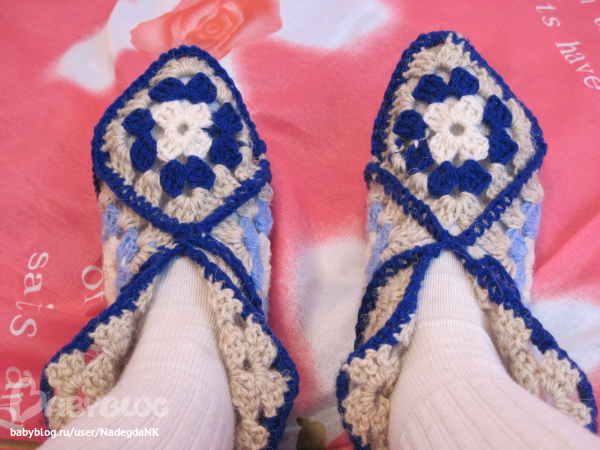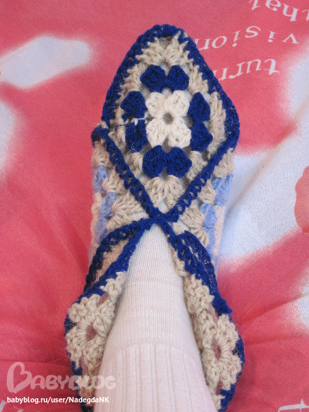 Это схема квадратиков. А на подошве я все вязала столбиками с накидом, кроме угловых воздушных петель (для тепла).