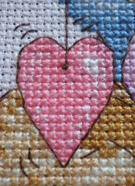 В наборе идет 2 иголки.Для крестиков,полукрестиков берите ту,что с большим ушком, на пакетике с иглой сиреневая сплошная полоска,пунктирная полоска на пакетике с иглой для бэка.Выдергиваете из пасмы одну ниточку.складываете её пополам вставляете в иглу и вышиваете.Стежки в основном идут в 2 нити,только середина личиков вышивается крестом в 1 нить!