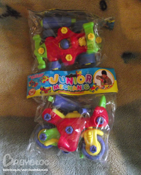 игрухи для мелких - Арсюша уже свою разобрал)) уложила спать и детальки собираю... надо теперь его будет учить делать обатные действия:)