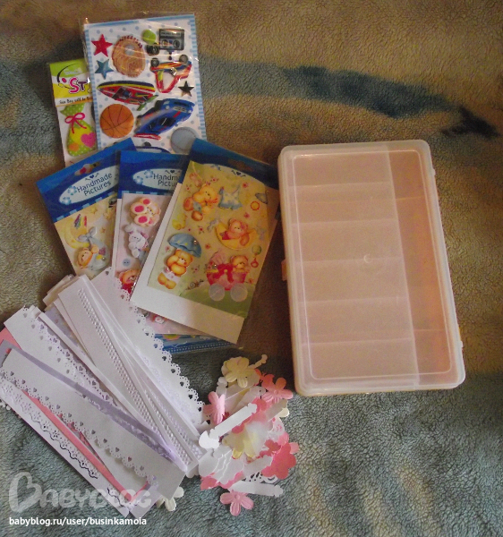 разные дырокольности, наклеечки и коробочка для хранения всяких мелочей)