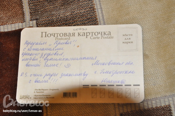 обратная сторона открытки))))как тсаринная.......и рукописный текст..........