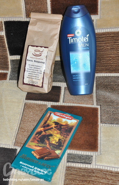 чай,шоколадка и гель для душа,это прямо для моего мужа,он у меня ценитель чая,и гель ему очень понравился))))))шоколадку схомячил уже сынулька..Кстати о чае(я ведь тебе тоже приготовила))))вкус другой)а ты Юляш,словно угадала,обажаю этот аромат))))))))))