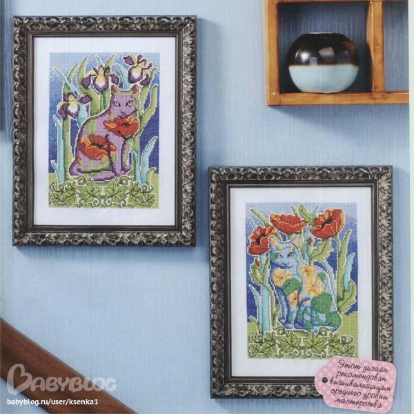 В июньском номере журнала "Formula рукоделия" мне очень понравился необычный кошачий триптих.