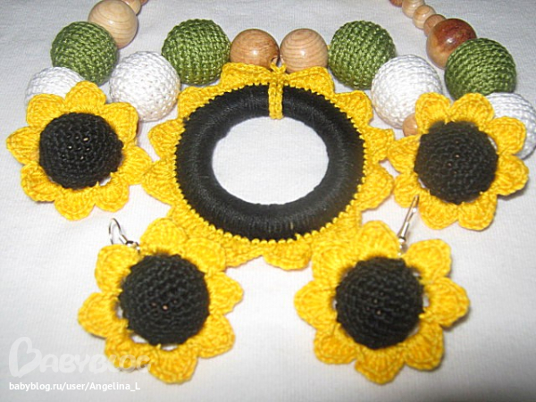 Бижутерия для слингомам. Слингобусы. Грызунки.Пришла в голову идея связать бусы с подсолнухами, потом набрала в интернете... Америку я не открыла )))