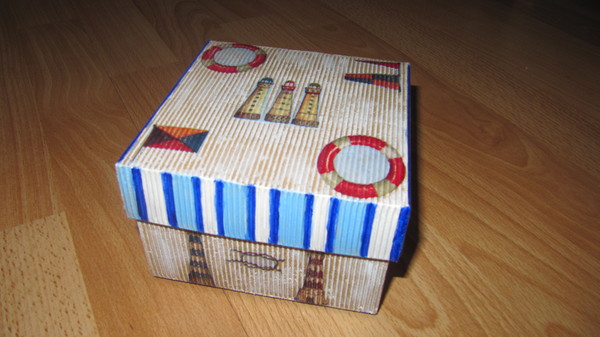 Красота! Коробок дома много, но когда же я наберусь храбрости то ?! Бутылка воще понравилась!!! Морская тема очень интересная, вы молодец! А коробку тоже лаком покрывали, все как надо?