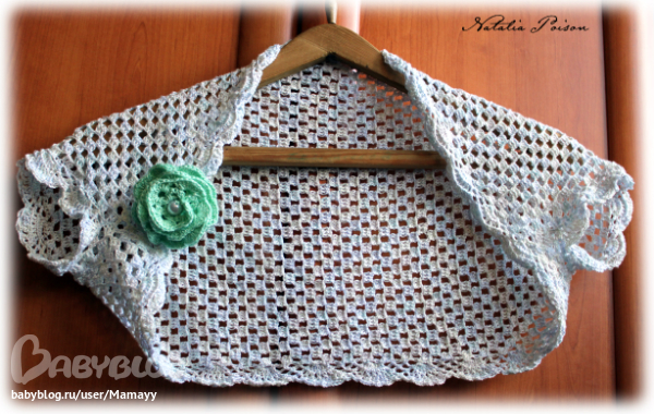 а цветочек зеленый к какому-то наряду или просто так?А можно фото на модели?Давно на это болеро засматриваюсь,но не решаюсь вязать,потому что не знаю как оно сядет((