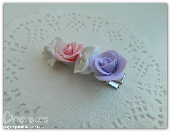 Спасибо))очень приятно))) Бусины я купила, у меня смелости не хватит сделать их самой))) а на заколку сначала намазала жидкую пластику, и сверху еще для лучшего склеивания капнула клей-момент)