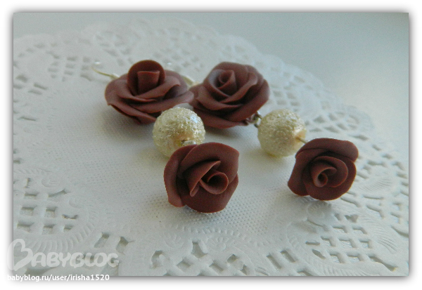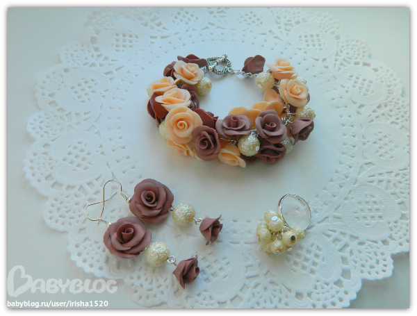 Шоколадно-бежевый комплект очень красивый, я бы сказала, шикарно смотрится) А можно пару вопросов? Из какой глины делали сахарные бусины в этом комплекте? И как крепили цветы на первую заколку? Просто клей или на жидкую пластику?