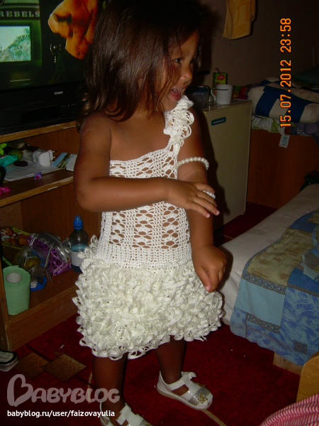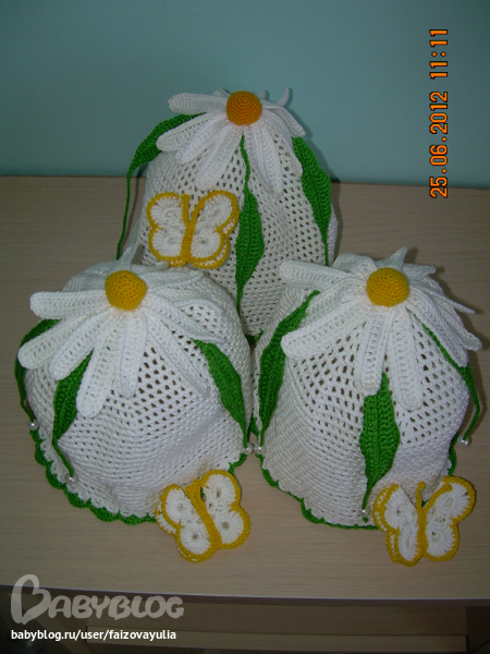 Юлечка,все очень хорошо.Сарафан смотрится бесподобно на доче и беретка голубая обалденная.Все таки безпроигрышный вариант у нас такая белая,а я бы такую разных цветов навязала уж очень она удачная.Но что то руки пока нехотят ничего делать -перерыв в творчестве.