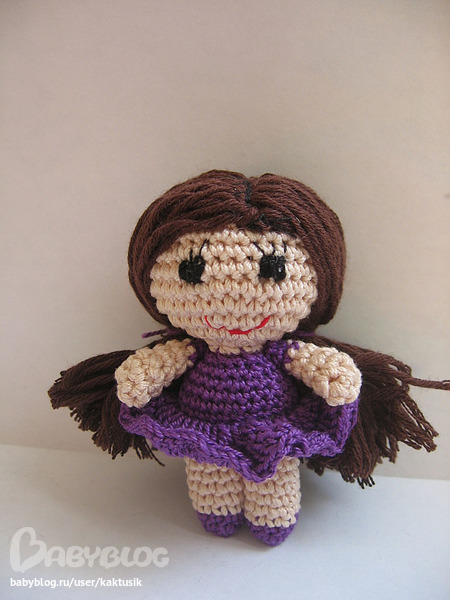 а есл в косичку заплести и накрепко завязать? у фиолетовой в этот раз волосы пришивала по-другому, и хвостики прям к голове пришивала