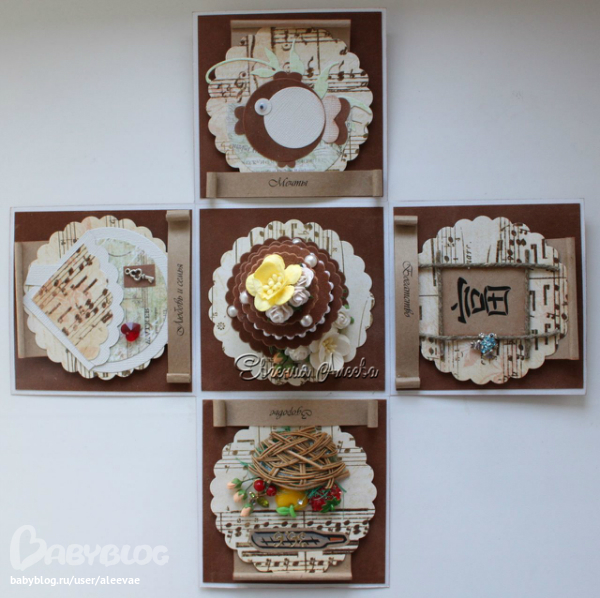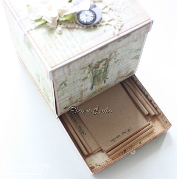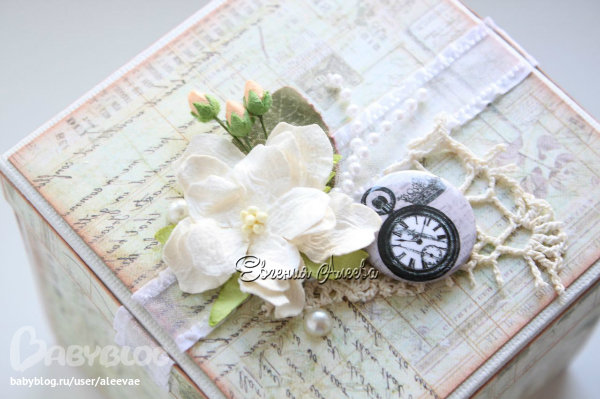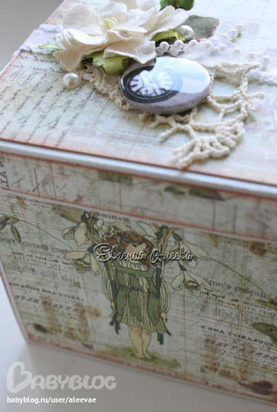 Это крышечка - вид сверху, вообще куб получился очень винтажным, на мой взгляд, бумажка просто феерическая:)