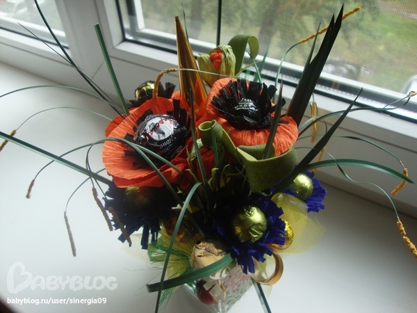 Это мой первый букетик. Пока освоила только маки и васильки. Глядя на ваши работы буду стараться и дальше.