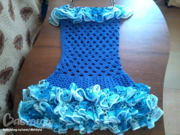 Обалденное платье - просто восхищаюсь. А схемкой рюш не поделитесь? как вы их вяжете?