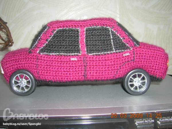 Спасибо. Вязала в 2006 г., до этого не видела подобное (интернета тогда у меня не было). Сейчас часто встречаю вязанные предметы (если можно так назвать их). Недавно вроде было организовано совместное вязание машинок на ББ. Вот нашла ссылку http://www.babyblog.ru/community/post/rukodelie/1762966