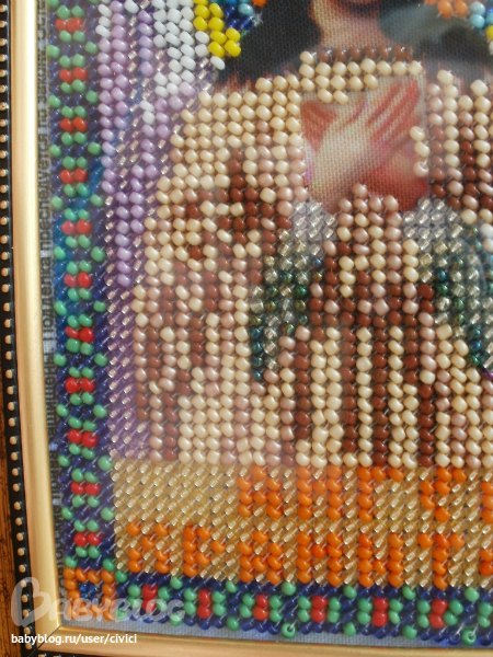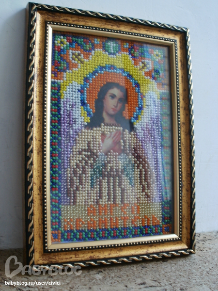 Красивая икона))). Я такую за 4!!! дня вышила для будущей крестницы, спешила, чтоб успели в рамку вставить. На днях должна забрать, надеюсь, что красиво вставят, без изъянов, сфоткаю, похвастаюсь))). Кстати, тоже моя первая))).