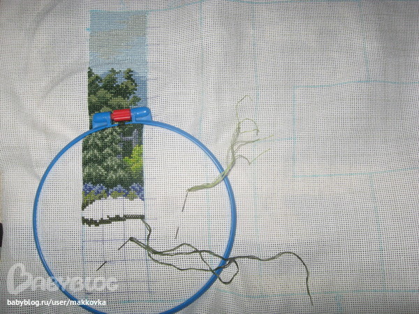 Во-вторых, хоть и было время в больнице, но дочь вышивать дала мало. Взяла только лошадок и три мотка нитей. Но там нужно с месяц лежать и только вышивать, чтобы закончить эту листву.