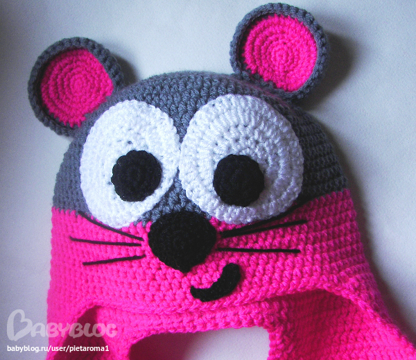 Такая озорная мышь))), я бы еще блики белые сделала на черных кружках глаз, сразу глазки оживут. Просто ниткой прошить пару стежков, у меня в дневнике посмотрите на шапке Нюши или совы.