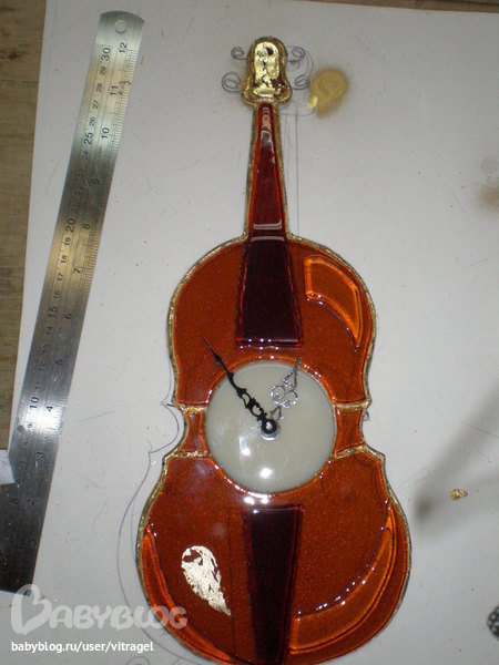 ну а пока могу показать разобранный витраж на "операционном"столе и готовый. извините за качество, фото с телефона, фотографировала прям перед заказчиком