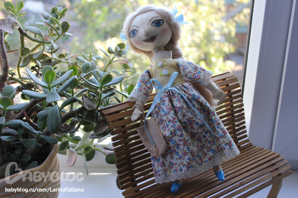 Таня, очень милая куколка!!! Лицо хорошо прорисовано, глазки понравились. Вообще девочка улыбчивая и что-то в ней есть... какая-то изюминка! Молодчинка!!!!