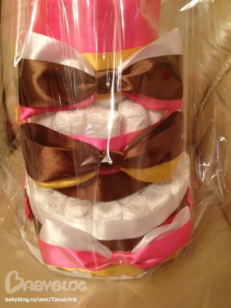 И я бы советовала покупать ленты с запасом, тк на бантик для упаковки мне не хватило, видимо размахала банты на самом тортике)))
