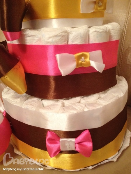 Единственное, кривовато получилось расположение бантиков из-за того, что бантики пришила сразу к лентам, а чтобы было все ровно-надо пришивать уже на торте!