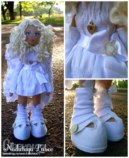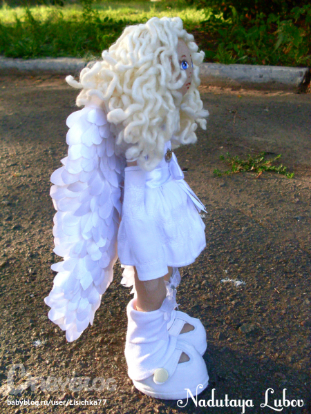 Любаша, кукла-ангел замечательная!!! Крылья очень поразили, большие, белые и очень реалистичные!!! Лицо ангельское, красиво нарисовано! Я влюбилась!!!