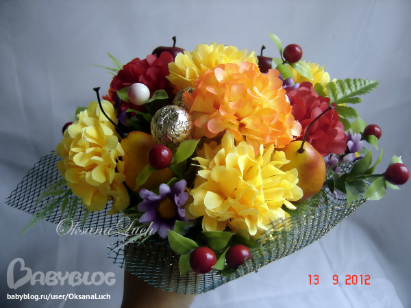 Дары осени, делала ребенку на конкурс в школу. Заняли 1 место, пропало 2 конфеты, но слава Богу вернулась.