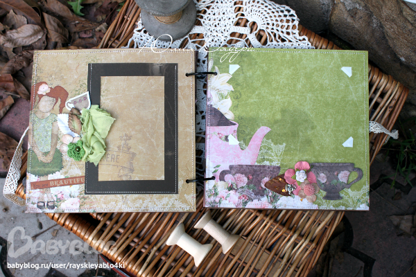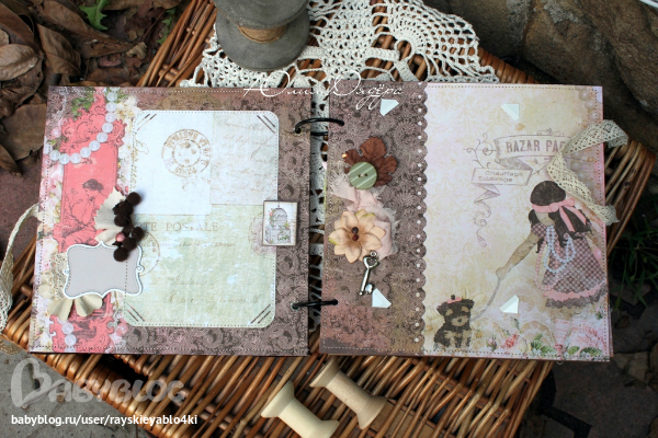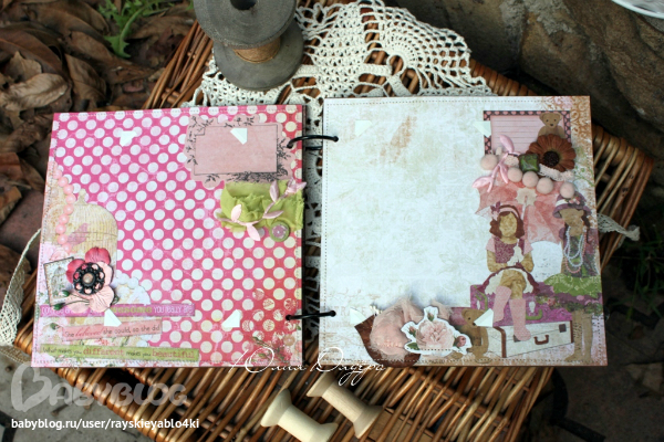 В альбоме 10 страниц, формат 20 на 20, и он практически полностью сделан из коллекции материалов BoBunny "Little Miss". Ищет хозяйку)