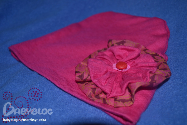 Купила на распродаже трикотаж...Решила шапулю сшить.Она получилась двойная.,по желанию можно и бортик подгибать.