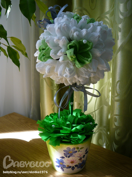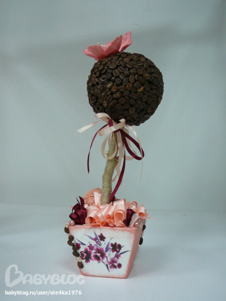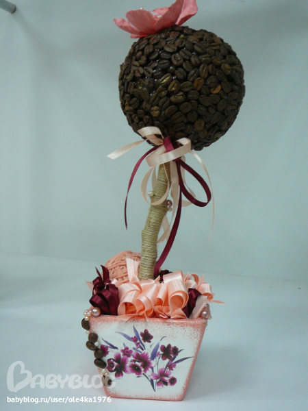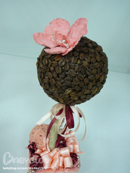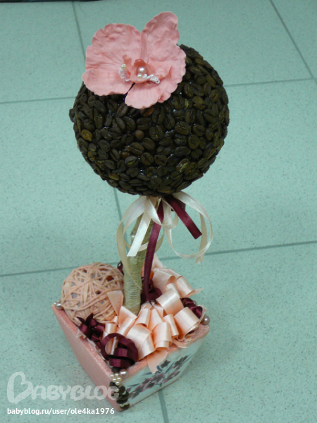 Вся информация в интернете(здесь же на ББ - флористика, топиарий), трудности были с выбором клея для кофе, (горячий пистолет или ТИТАН - остановилась на ТИТАНЕ)