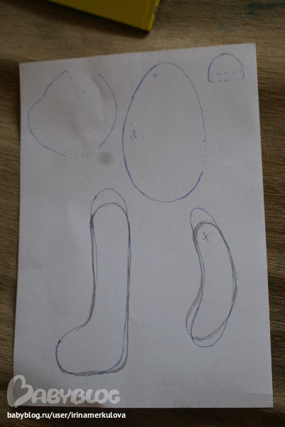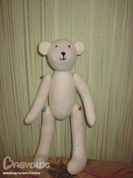 Уши я пока не сшила, т.к не решила еще какими они будут.