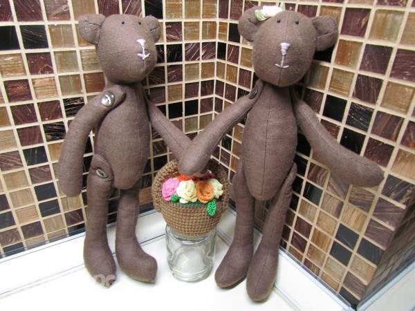 Девоньки, простите меня пожалуйста, что я так припозднилась выложить своих мишек. Я с вами в полном процессе, но до компа никак не добраться. Вот какую мы с детками сладкую парочку смастерили и назвали их Маша и Миша!