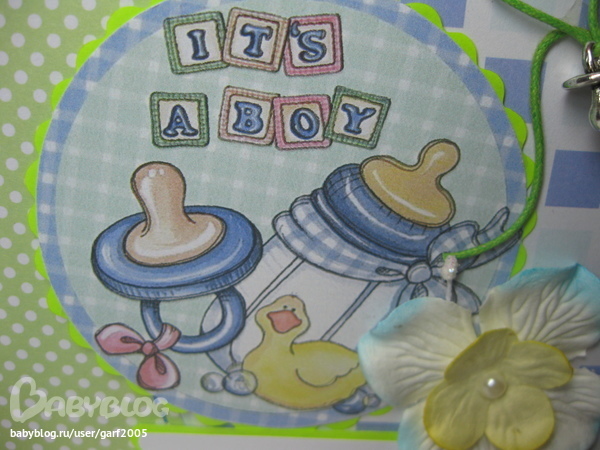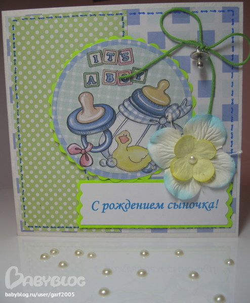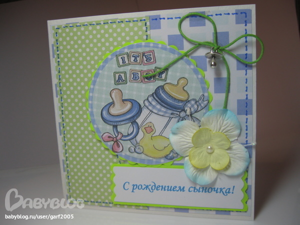 Так сложись обстоятельства, что в скором времени, несколько близких мне людей станут мамами сыночков. По этому случая я не смогла удержаться чтоб не сделать поздравительную открыточку. Это первая, для родителей малыша, которому всего 8 дней
