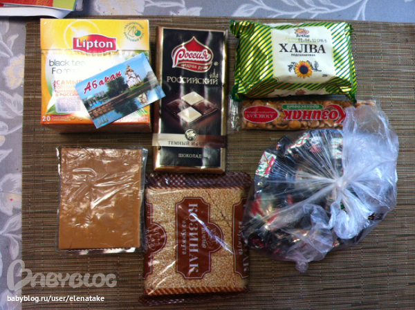 А сколько вкусностей (и магнитик в мою коллекцию) Халва!!!!! ооооо! буду пить чай! Козинаки все Лукасу оставлю, у нас такого нет, пусть пробует. Шоколад обязательно передам! И мои любимые конфетки из детства - Масочка!