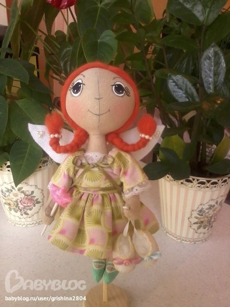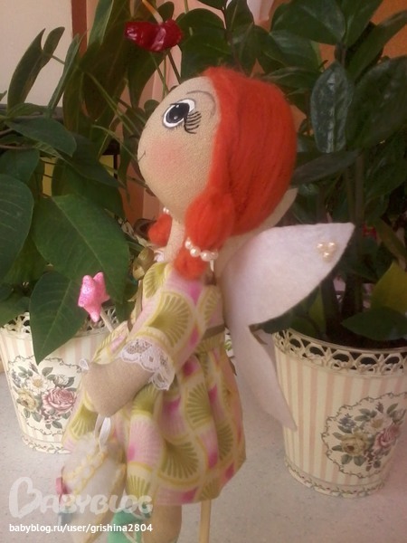 Фея сшита для одной ббешечки (не получается вставить ссылку) Оля, это твоя) Давно я хотела сшить такую фею, да все руки не доходили, и тут мне Оля (заказчица) подкинула интересную идею. Фея должна нести в себе смысл, что с нее появлением в доме появятся дети. Очень надеюсь. что смысл донесла. Вот, что вышло)