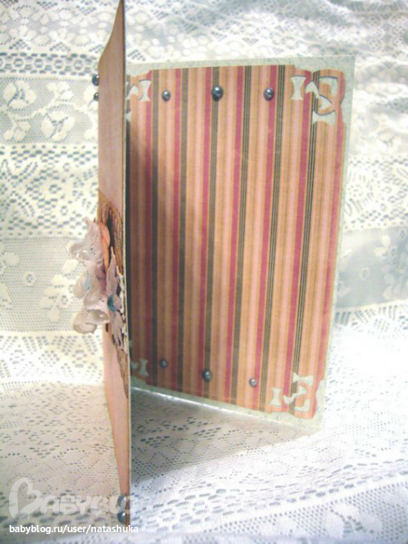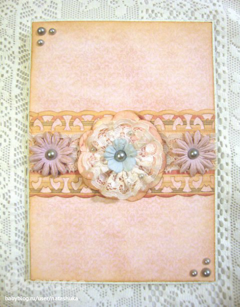 Я в стиле шебби не пробовала себя, но судя по работам, которые видела, Ваша не очень похожа... А вообще открытка очень милая.